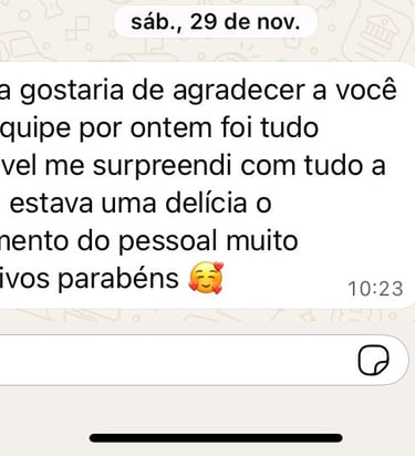 Com criatividade, cuidado e atenção aos detalhes, ajudamos nossos clientes a viverem cada momento sem preocupações. Nossa equipe cuida de tudo: da decoração ao buffet, do planejamento à execução, sempre com carinho, organização e profissionalismo.