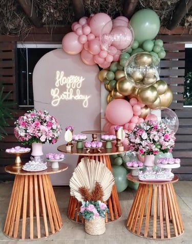 festas infantis, 15 anos, chás, aniversários adultos e eventos especiais.
